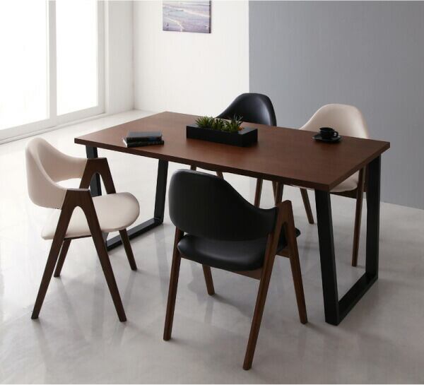 天然木ウォールナットモダンデザインダイニング Wyrd ヴィールド: 4点:テーブルW150+チェア×2+ベンチ