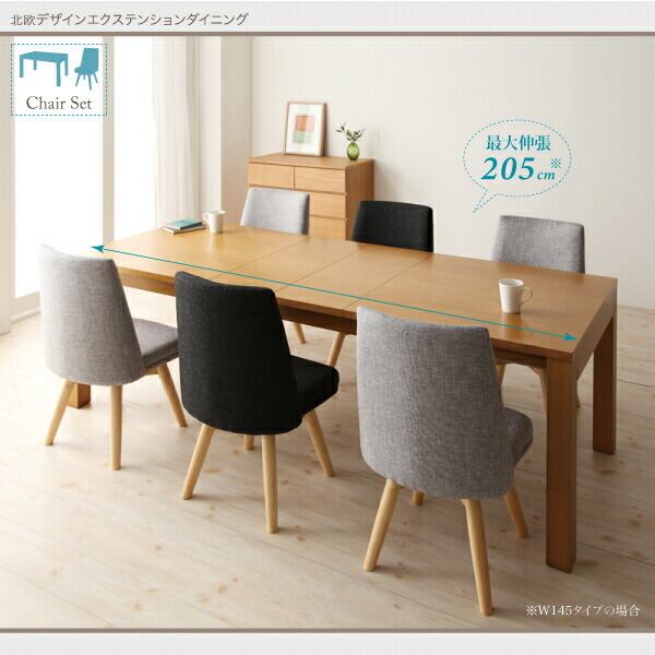 7点:テーブルW145-205+チェア×6