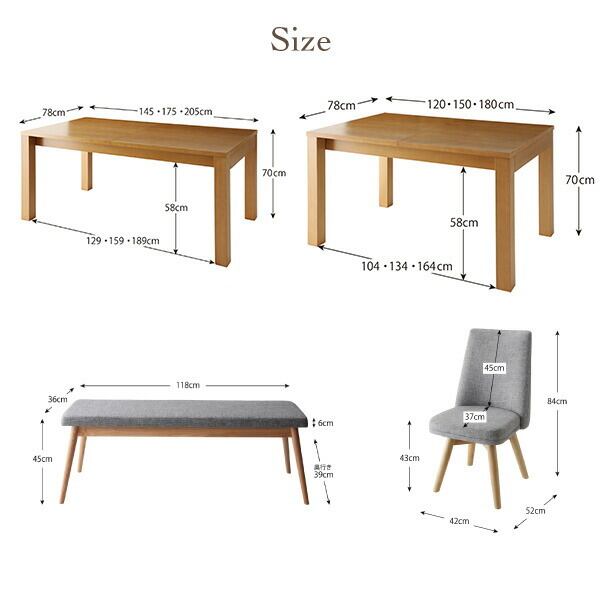 8点:テーブルW145-205+チェア×6+ベンチ