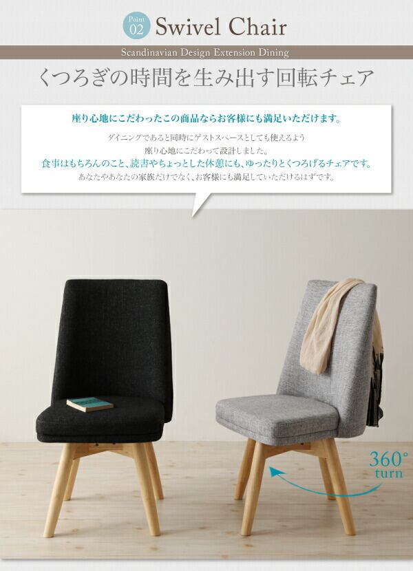 座ったまま、簡単に身体の向きを変えられる回転チェア。