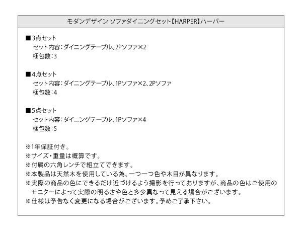 モダンデザイン ソファダイニングセット HARPER ハーパー: 4点:テーブルW150+ソファ3点