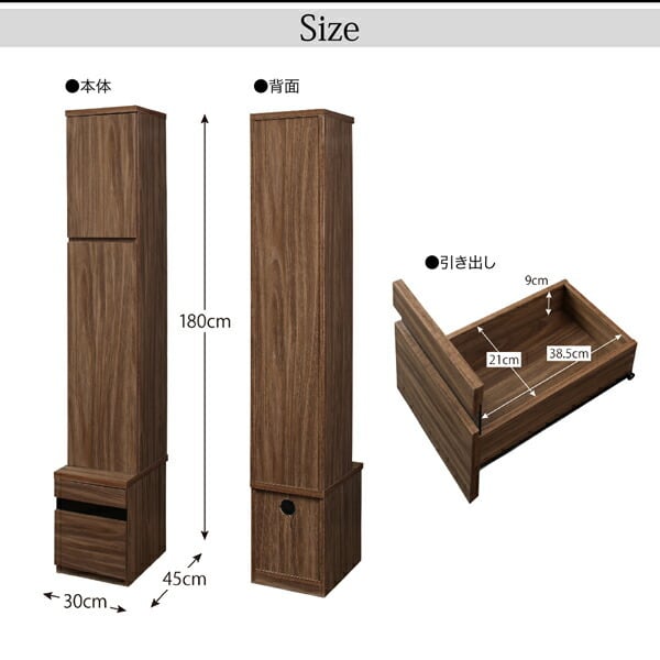 中段扉:幅26×奥行30×高さ87cm/可動棚3枚