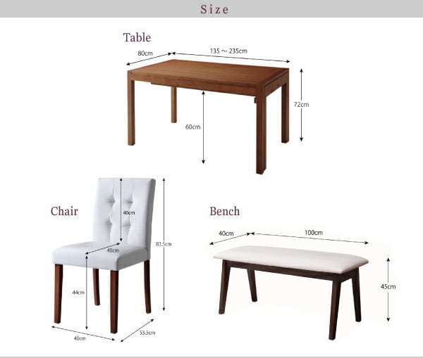 4点:テーブル+チェア×2+ベンチ