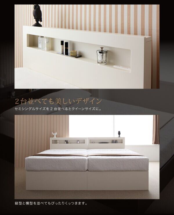 セミシングルサイズを2台並べるとクイーンサイズに。