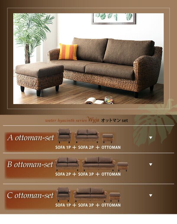 ウォーターヒヤシンスシリーズ Wyja ウィージャ: ソファ2点1P+2P&オットマン