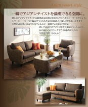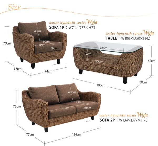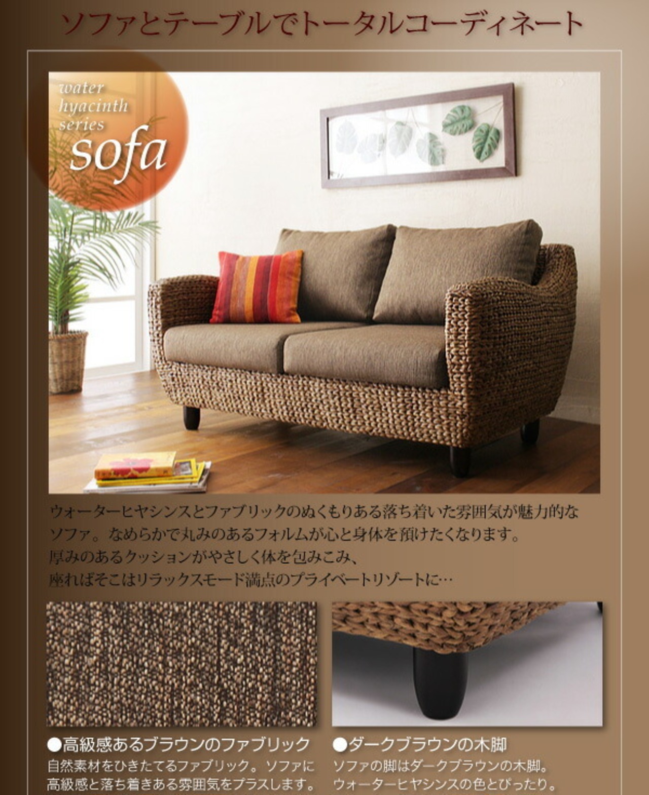 ウォーターヒヤシンスとファブリックのぬくもりある落ち着いた雰囲気が魅力的なソファ。