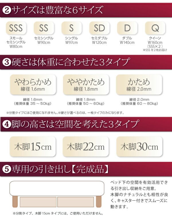 新・国産ポケットコイルマットレスベッド Waza ワザ: セミシングル: 脚22cm