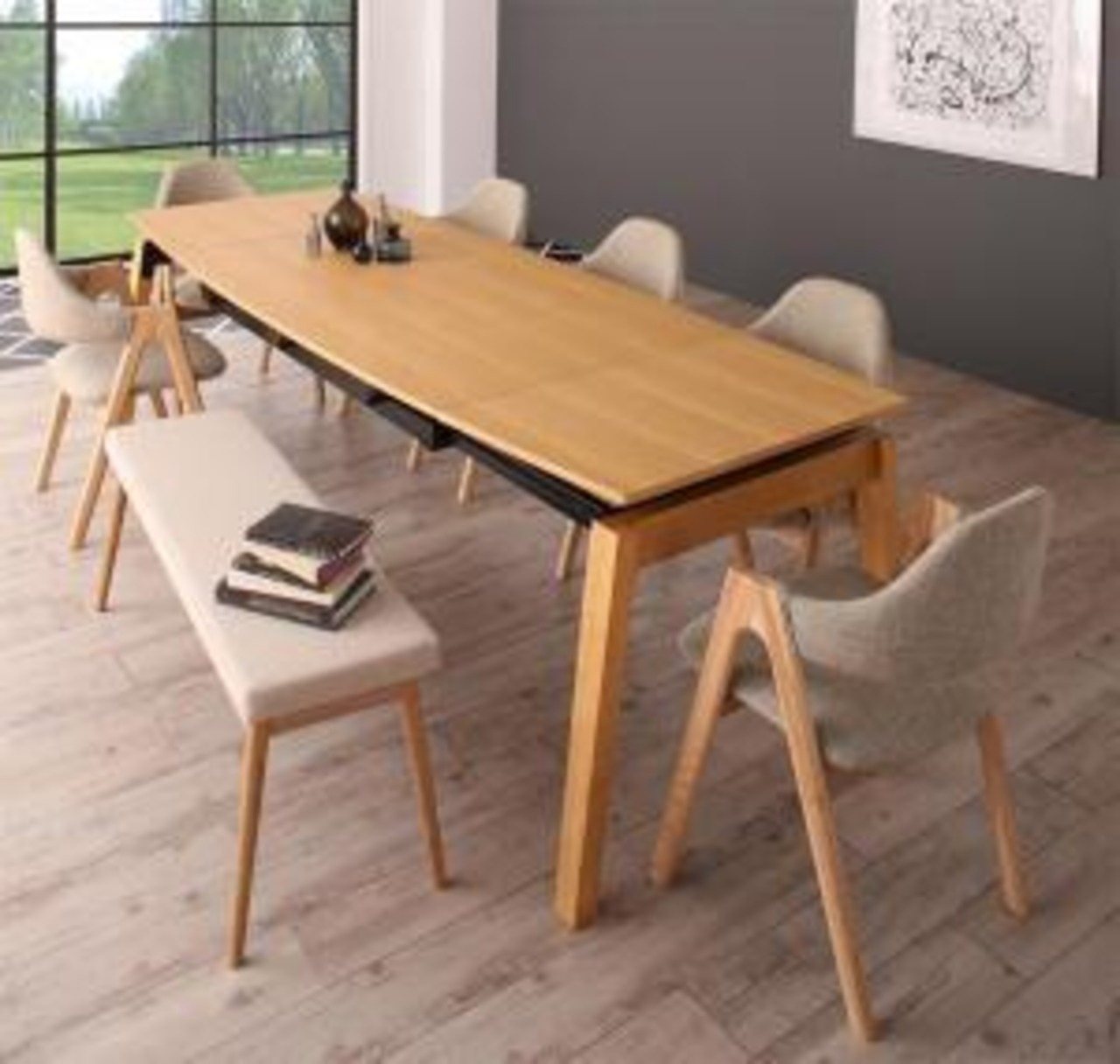 Extension Dining Table×Scandinavian Design Chair&Bench Set