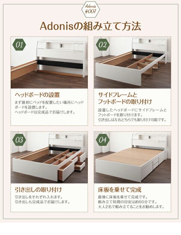 フラップ棚・照明・コンセント付多機能チェストベッド