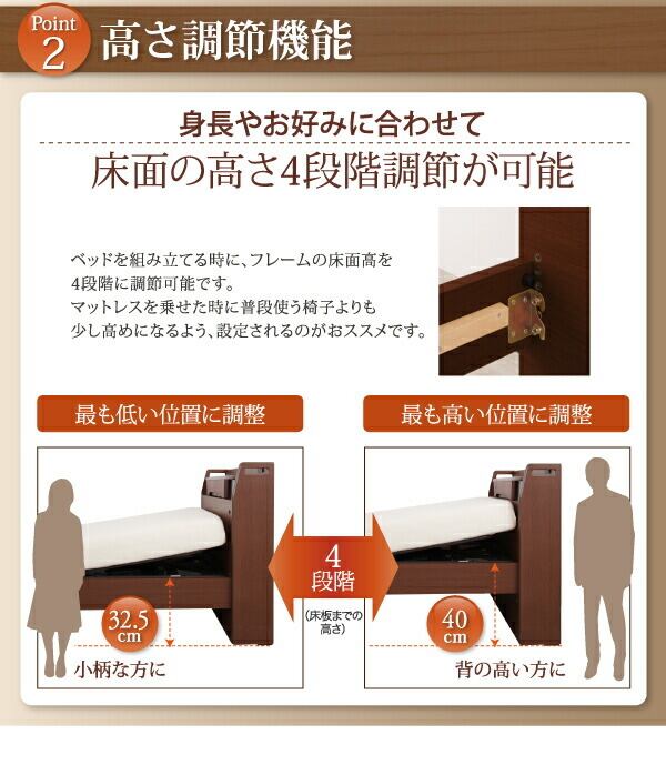 ベッドを組み立てた時に、フレームの床面高を4段階に調節可能です。