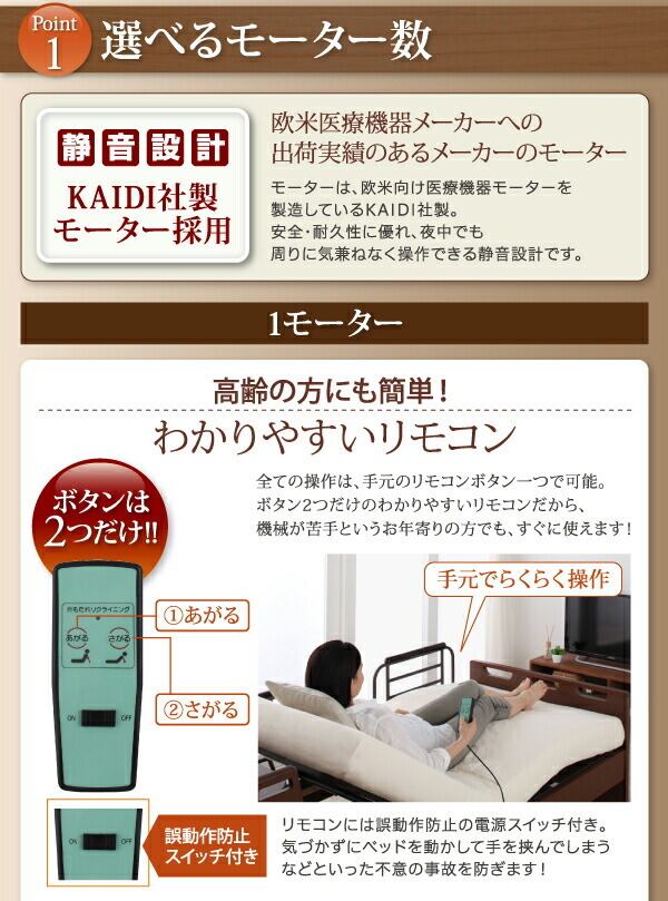 棚・照明・コンセント付き電動ベッド ラクライト: ベッドフレームのみ: 1モーター