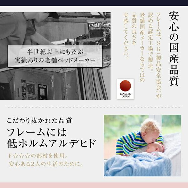 国産 コンセント・照明付カップルにうれしいフロアベッド