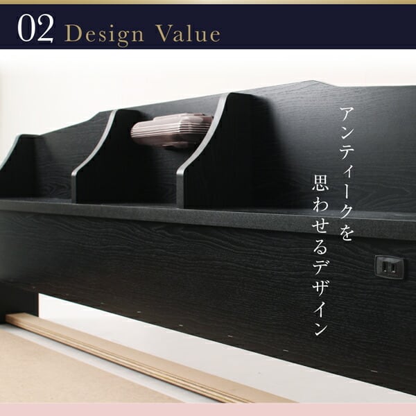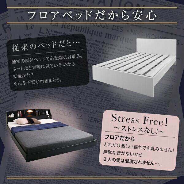 国産 コンセント・照明付カップルにうれしいフロアベッド
