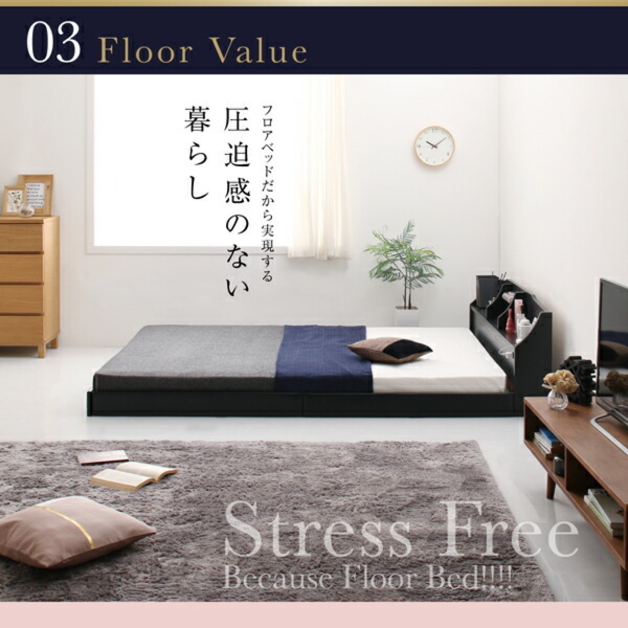 国産 コンセント・照明付カップルにうれしいフロアベッド