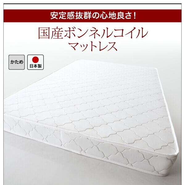 国産 コンセント・照明付 カップルにうれしいフロアベッド: ダブル: 国産ボンネルコイルマットレス付