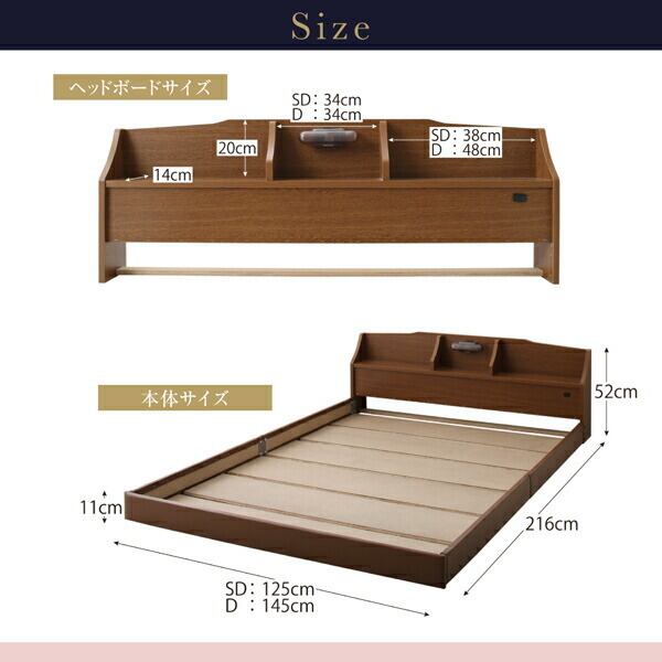 国産 コンセント・照明付カップルにうれしいフロアベッド