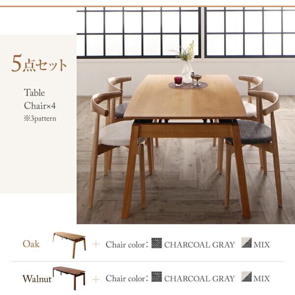 オーク材・ウォールナット材 北欧伸縮式ダイニング Jole ジョール: 6点:テーブル+チェア×4+ベンチ