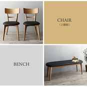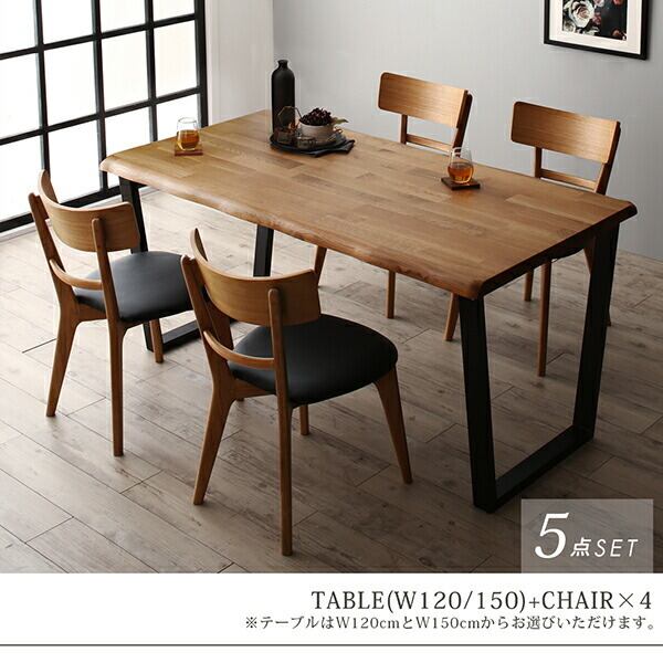 テーブルとチェアにはオークナチュラルとブラックの2色を使用。