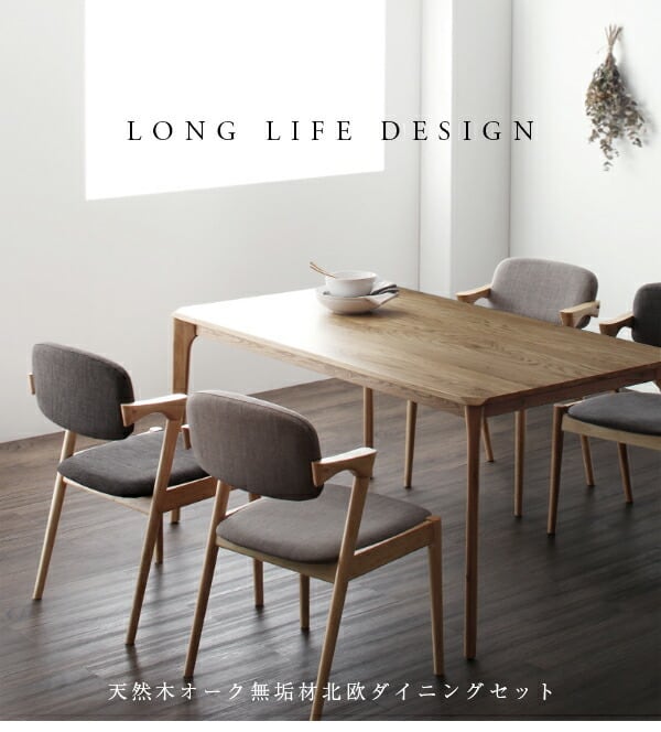 天然木オーク無垢材 北欧ダイニングセット The North ザ・ノース5点:テーブル+チェア×4
