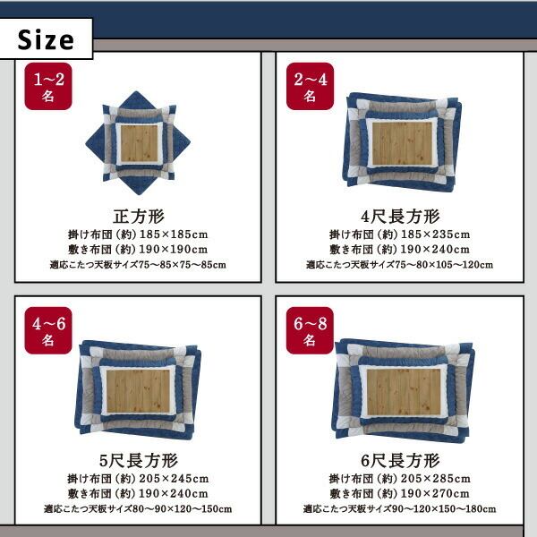 約6名~8名用のこたつテーブルと合わせてお使いいただくのに、ちょうど良いサイズです。