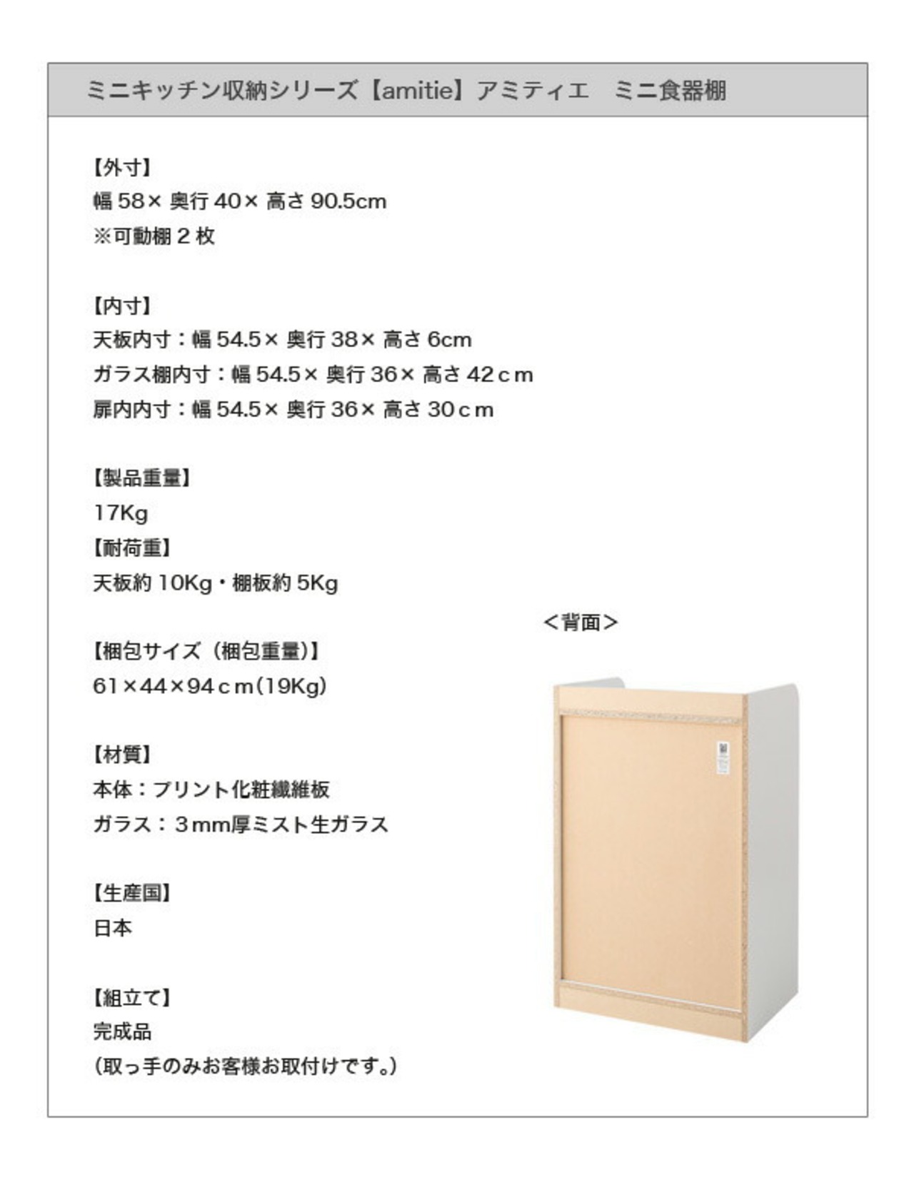 ミニキッチン収納シリーズ amitie アミティエ: 食器棚: ミドル