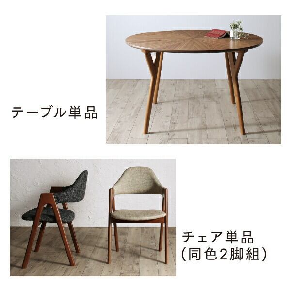 ウォールナットの光線張り北欧デザイン丸テーブルダイニング ennut エンナット: 3点:テーブル+チェア×2