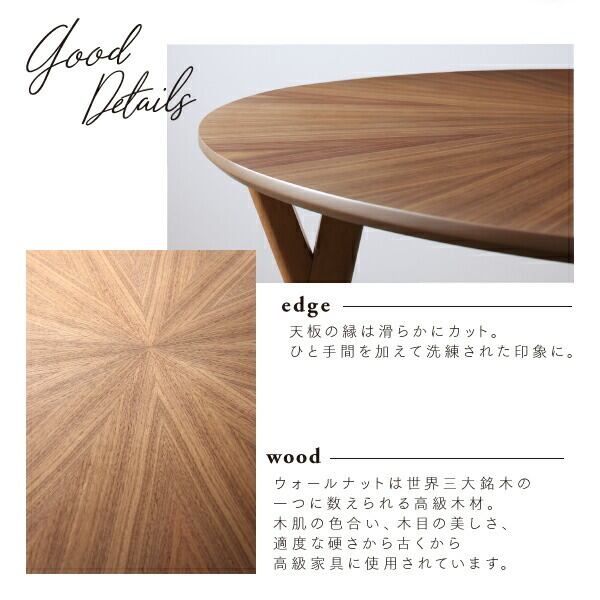 ウォールナットの光線張り北欧デザイン丸テーブルダイニング ennut エンナット: ダイニングテーブル