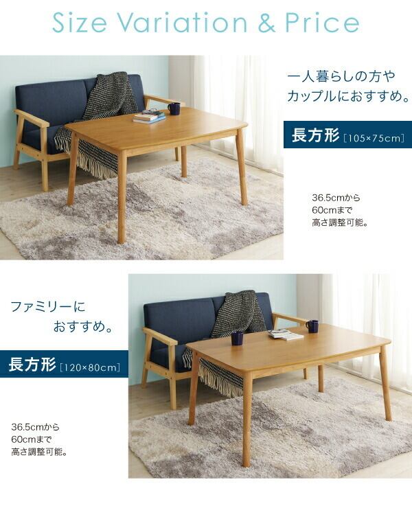 北欧デザイン高さ調整こたつテーブル Ramillies ラミリ: 4尺長方形(80×120cm)