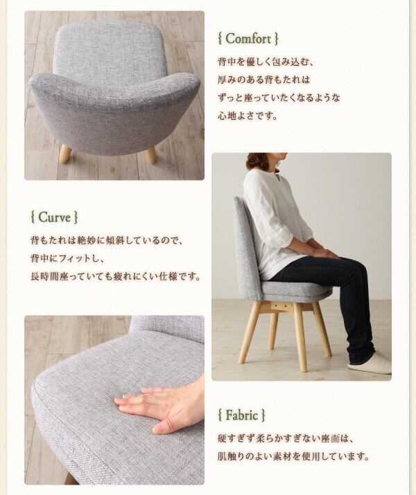 まぁるい背もたれとハの字の脚は、回転チェアとは思えない愛らしさで、