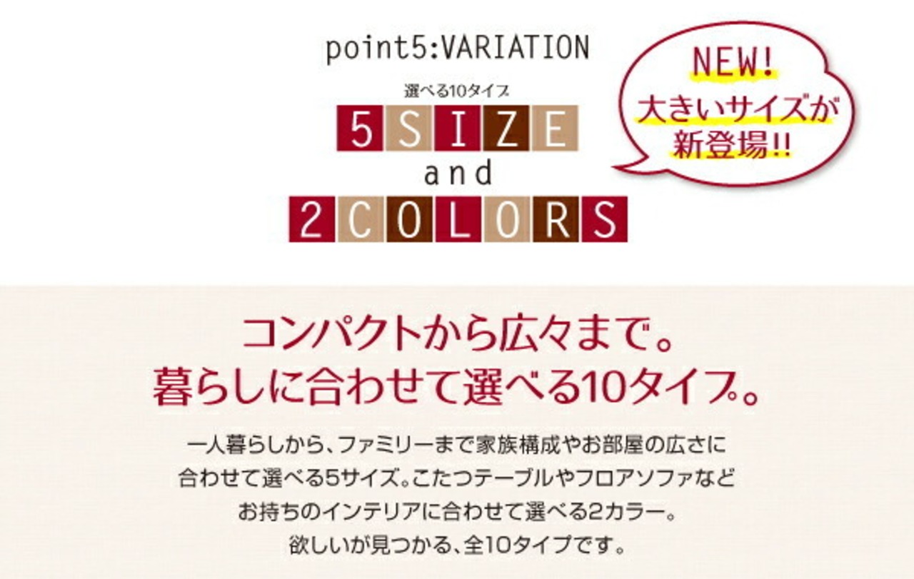 合わせて選べる5サイズ。こたつテーブルやフロアソファなど