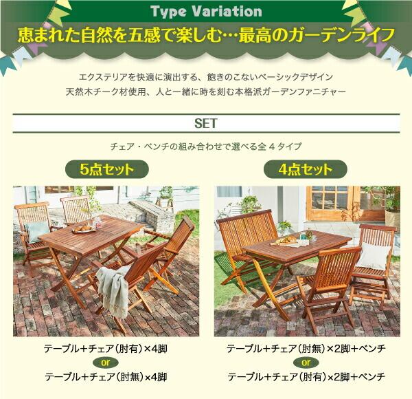 チーク天然木 折りたたみ式本格派 リビングガーデンファニチャー