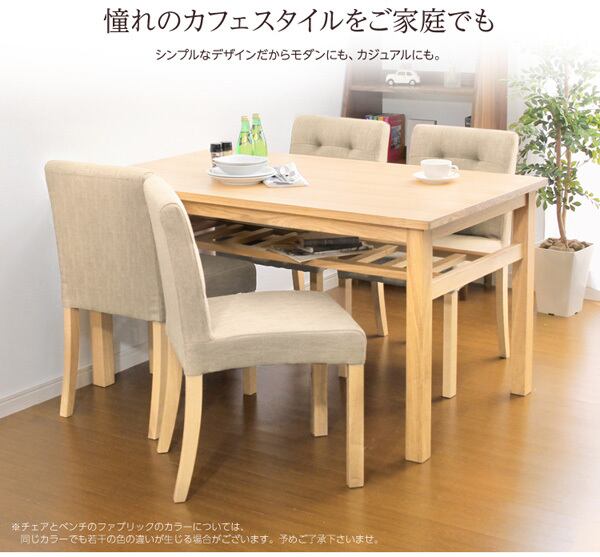 ナチュラルなテーブルとファブリックチェアのダイニング5点セット!