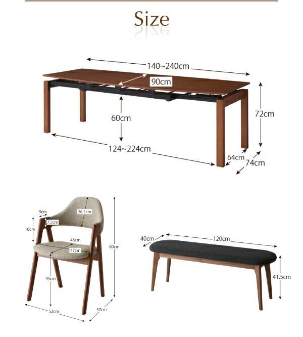 Extension Walnut Table×Scandinavian Design Chair Set