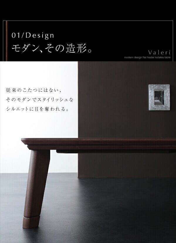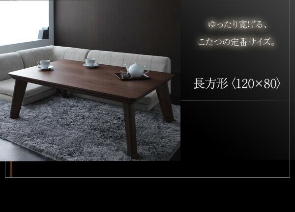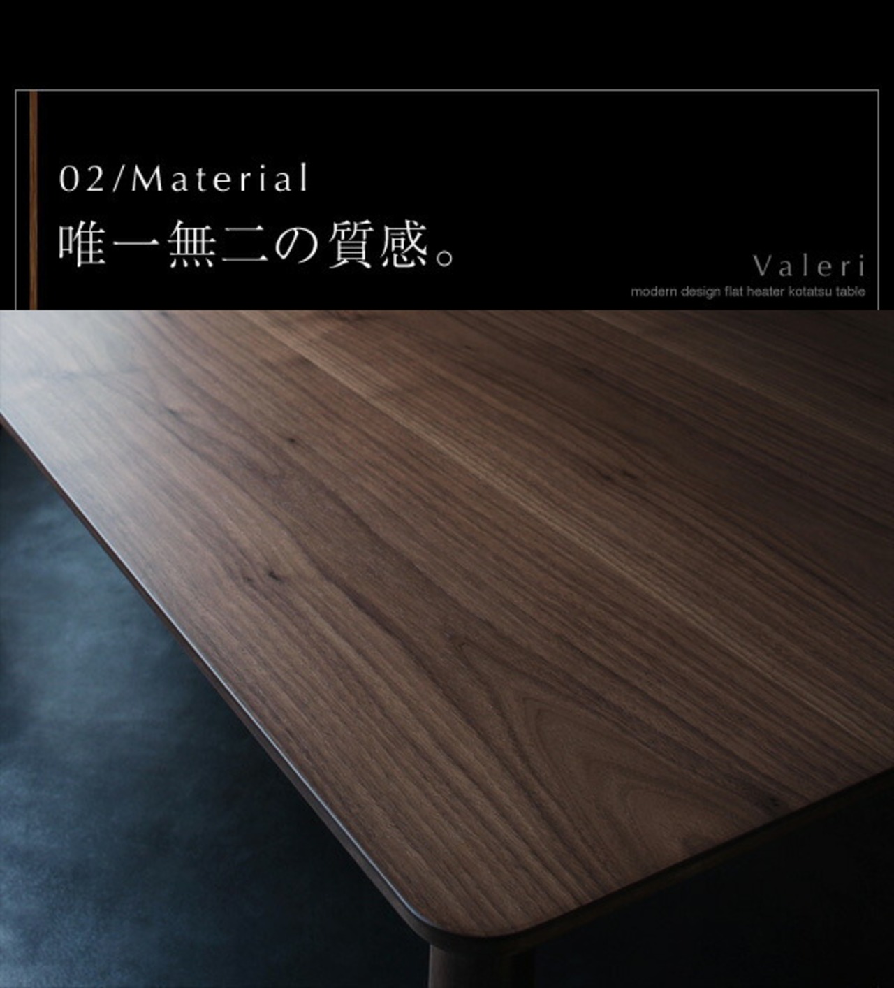 モダンデザインフラットヒーターこたつテーブル Valeri ヴァレーリ: 4尺長方形(80×120cm)
