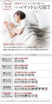 Mattress variation 薄型のマットレスから寝心地にこだわった上質なマットレスまで6種類からお選びいただけます。