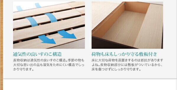 長物収納側にはすのこ構造を採用。マットレス使用を前提とした通常の床板に比べ、布団でも寝られるように頑丈な設計になっています。