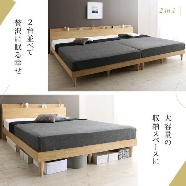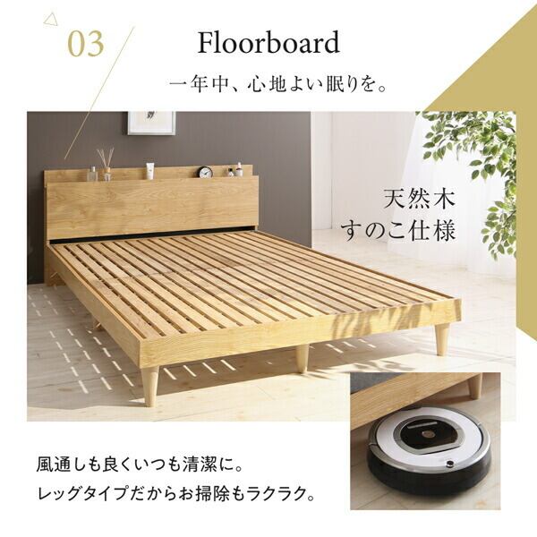 棚・コンセント付きデザインすのこベッド Camille カミーユ: シングル: マルチラススーパーマットレス付