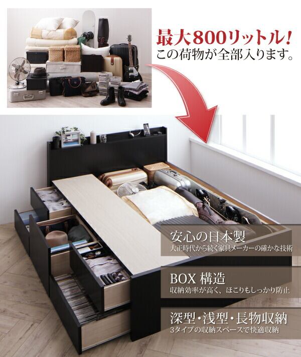 棚・コンセント付き_大容量チェストベッド Amario アーマリオ: シングル: 薄型スタンダードポケット付