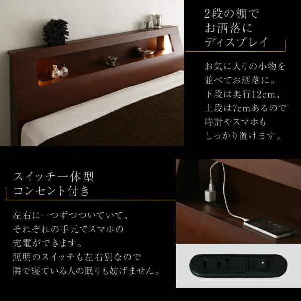高級ウォルナット材ワイドサイズ収納ベッド Fenrir フェンリル: ダブル レギュラー丈: ライトタイプ: ボンネルコイルマットレス付