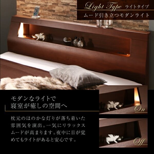 高級ウォルナット材ワイドサイズ収納ベッド Fenrir フェンリル: ダブル レギュラー丈: スリムタイプ: プレミアム国産ハードポケット付
