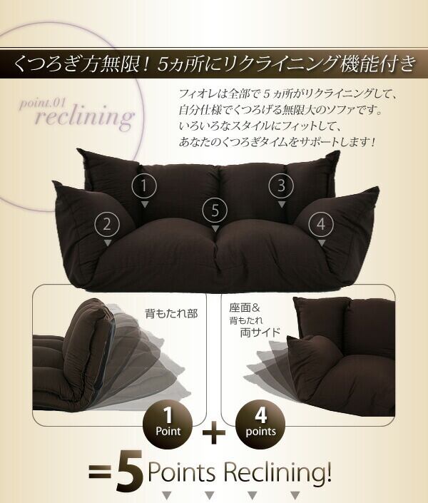 フィオレは全部で5ヵ所がリクライニングして、自分仕様でくつろげる無限大のソファです。