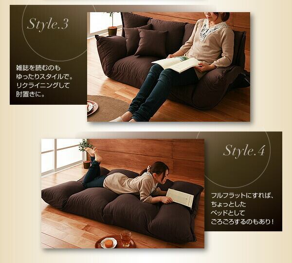 Function:くつろぎ方は自由!なんと5ヵ所のリクライニング機能付き