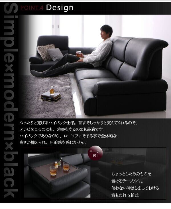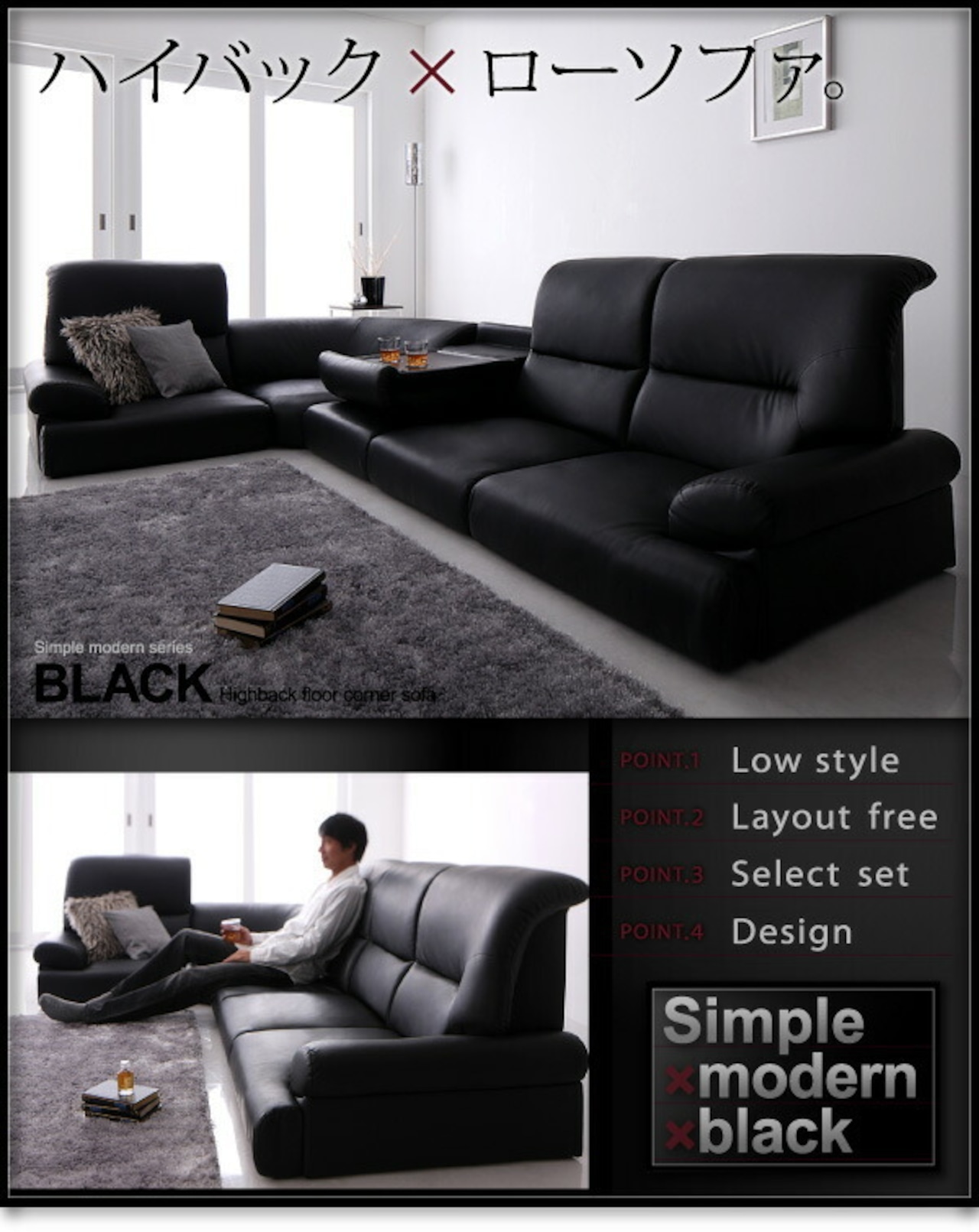 シンプルモダンシリーズ ハイバックフロアコーナーソファ BLACK ブラック: 4点セット: 1P×3+コーナー
