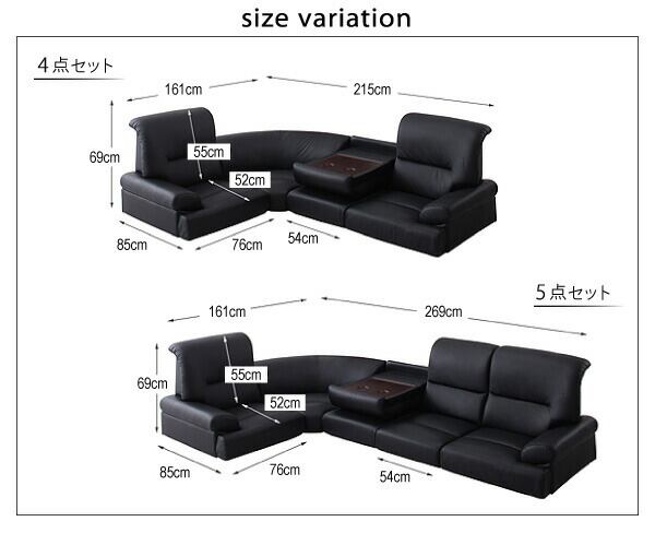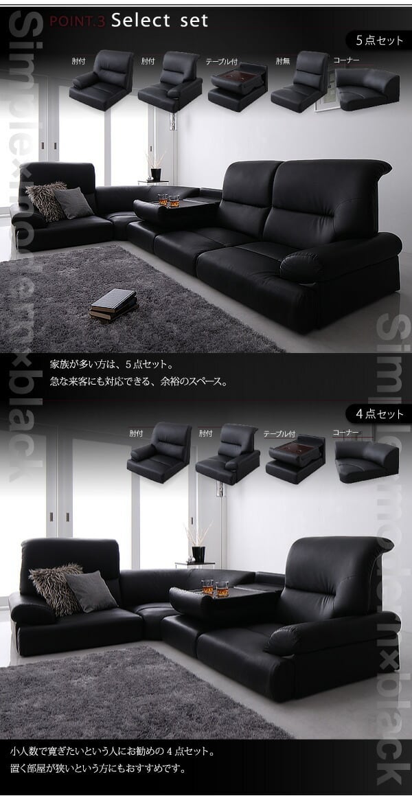 シンプルモダンシリーズ ハイバックフロアコーナーソファ BLACK ブラック: 5点セット: 1P×4+コーナー