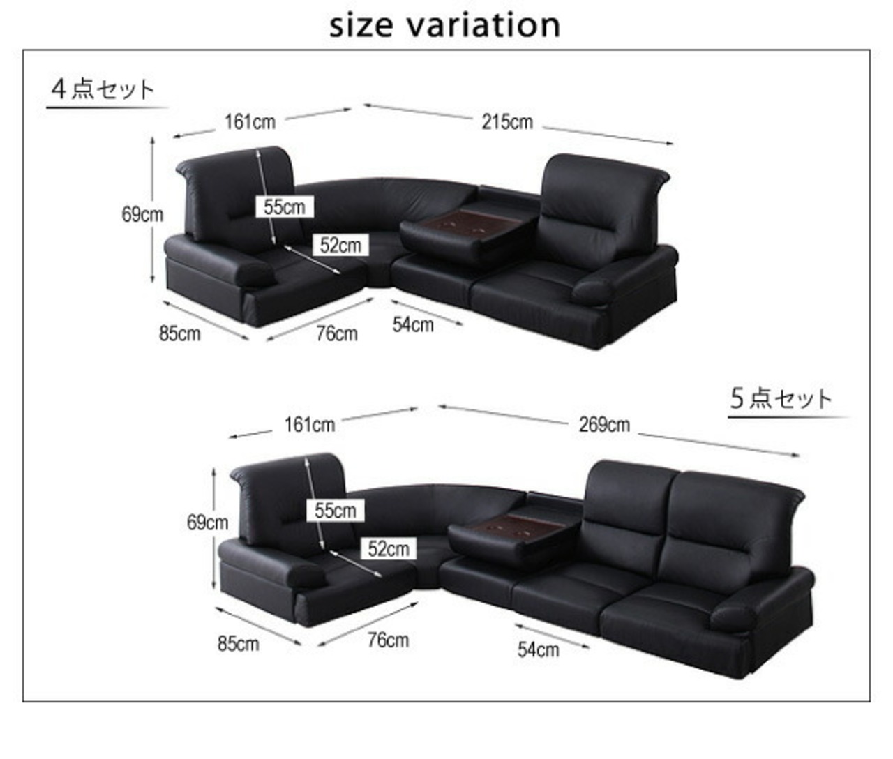5点セット・・・肘付×2、テーブル付、肘無、コーナー