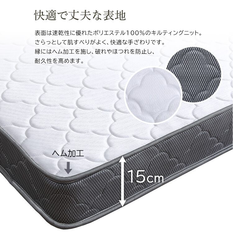 コイル同士が連結した構造のボンネルコイルにより、身体を面で支え、沈み込みすぎず安心した寝心地を実現します。