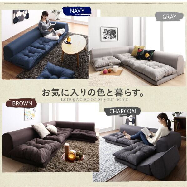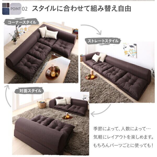 セットが選べるレイアウト自在のフロアコーナーソファ fleche フレーシュ: ソファ4点セット: 1P+2P+コーナー×2
