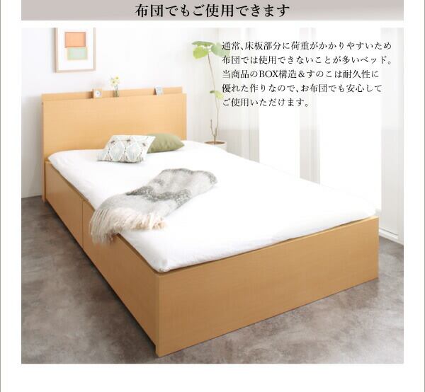 当商品のBOX構造&すのこは耐久性に優れた作りなので、お布団でも安心してご使用いただけます。