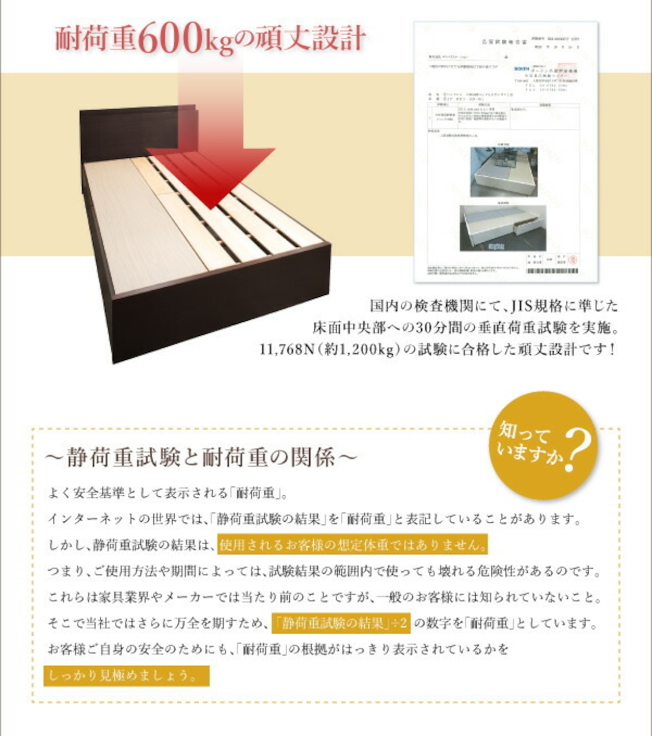 当商品のBOX構造&すのこは耐久性に優れた作りなので、お布団でも安心してご使用いただけます。
