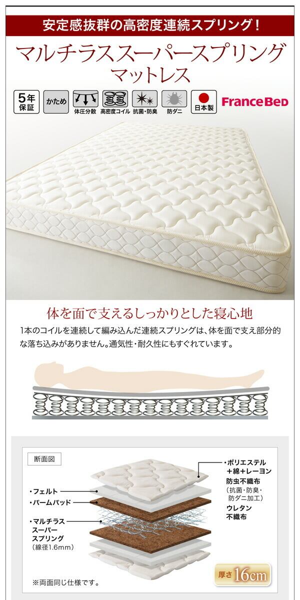 長く使える棚・コンセント付国産頑丈2杯収納ベッド Rhino ライノ : シングル: マルチラススーパーマットレス付: 組立設置サービス付き
